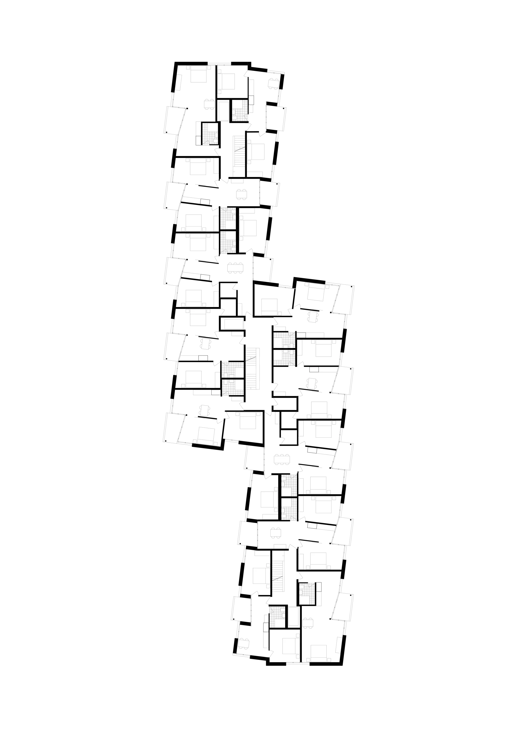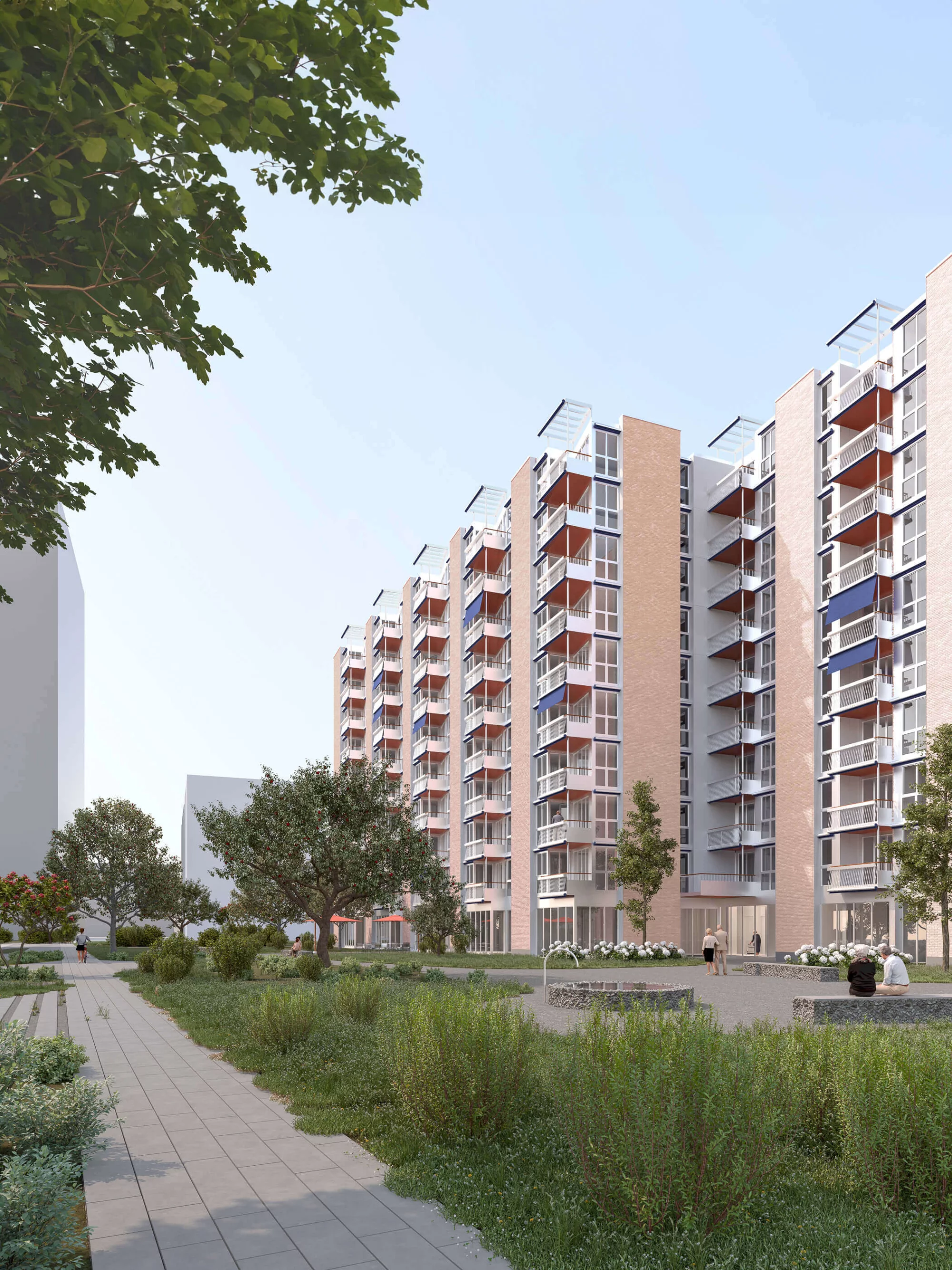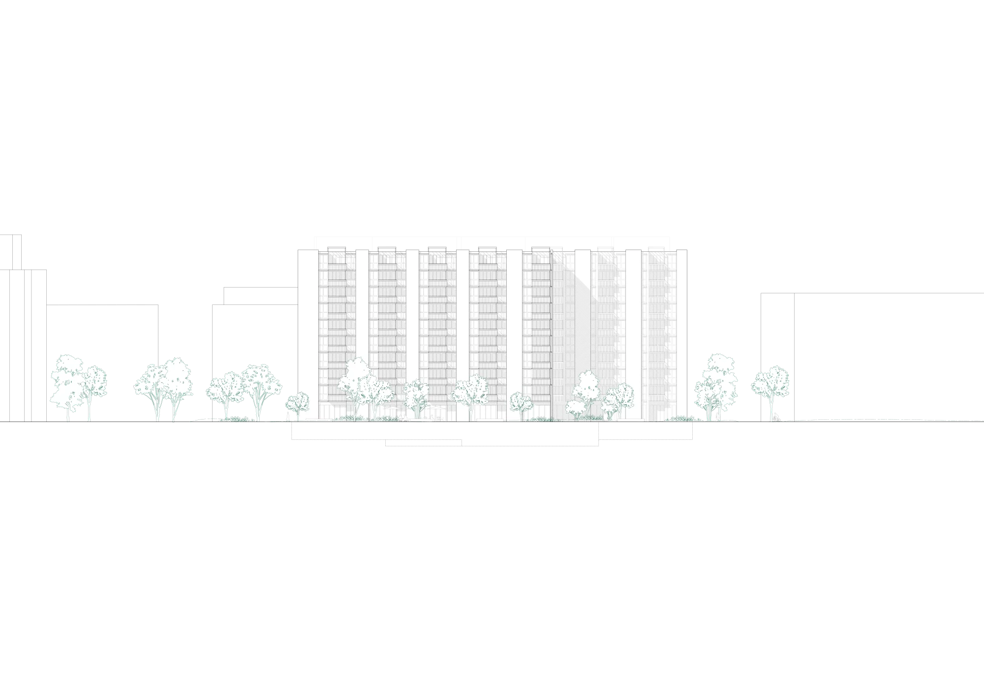 Tour résidentielle allongée, comprenant 110 appartements pour personnes âgées au cœur d'un quartier en mutation